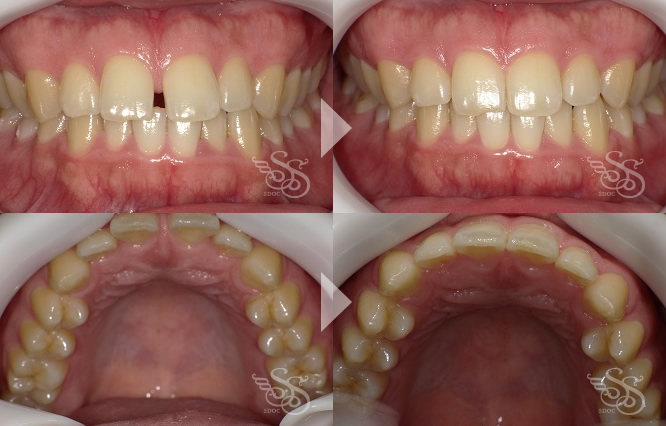 マウスピース矯正をご希望でしたので、上顎のみマウスピースで隙間を閉じてみました。